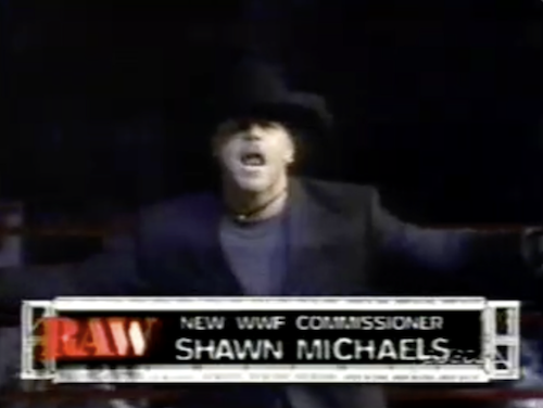 This new commissioner will govern over all WWF Superstars except Steve Austin, who remains under Vince McMahon’s direct rule. And this Commissioner’s name? Shawn Michaels, who is making his third comebacksince WrestleMania. Surely this time, he’ll stick around!
