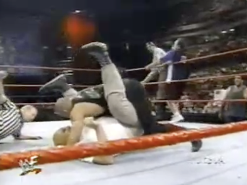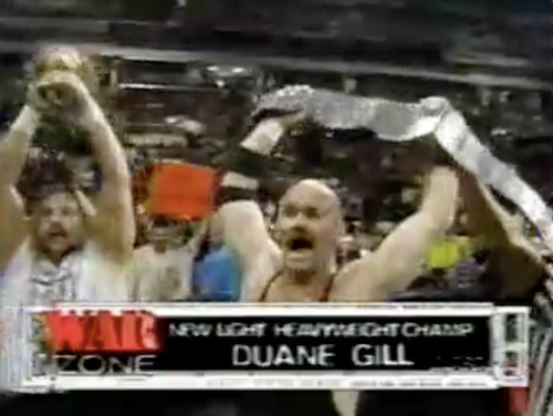 In the most nonsensical match of this WWF Raw, Christian defends his Light Heavyweight title against Duane Gill. Jim Ross credits (or blames) Shawn Michaels for this match.