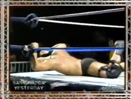 The WWF Rewind presented by Glover is Ken Shamrock’s interference last week, costing Steve Austin the title.