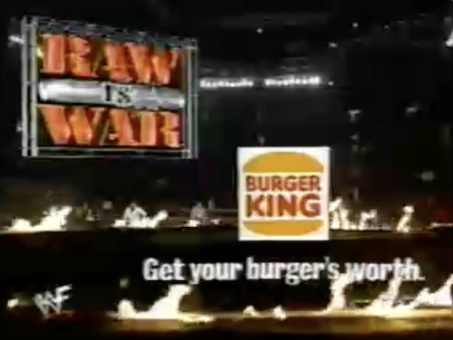The Brood, who are “different”, enter for a tag team match. With cameras pointed at Gangrel’s flaming entrance pit, Jim Ross reads ad copy for Burger King. Synergy!