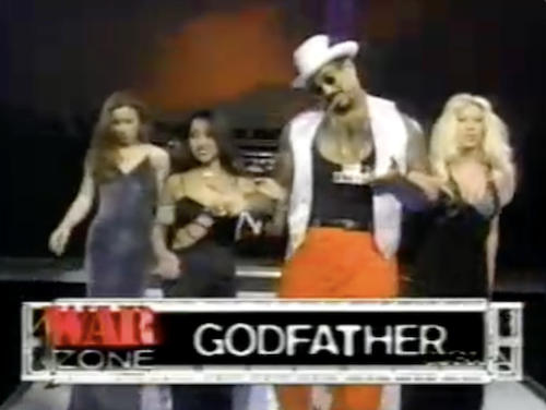 The Godfather makes his customary offer of hos to Tiger Ali Singh in exchange for a forfeit. Curiously, Godfather requires a small fee from Singh for what would normally be free. It’s called dynamic pricing. Before he gets an answer, though, Steven Regal shows up in his hard hat to warn Singh not to trust this sex trafficker. Regal and Singh double-team the Godfather until Val Venis evens things up.