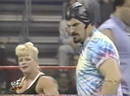 Steve Blackman faces Tiger Ali Singh, who attacks him before the bell with a flag pole. Blackman fights back by kicking Tiger’s ass for the entire match and pinning him. His celebration is crashed by the Blue Blazer, who “trips” on his way to the ring. Blackman starts pounding the Blazer before Owen Hart makes the save and locks Steve in a dragon sleeper. “I’m the lethal weapon!” yells Hart.