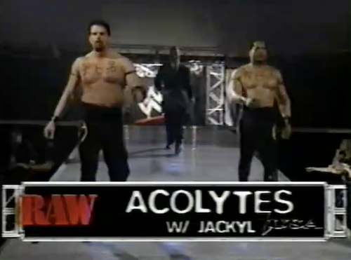 The Headbangers come to the ring. According to Cole, the Bangers have kicked the Insane Clown Posse to the curb just two weeks after the ICP’s heel turn. They face The Brood, the followers of a “gothic lifestyle” who hope to go an entire week without getting punked out.