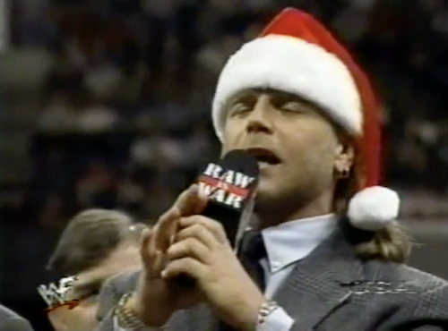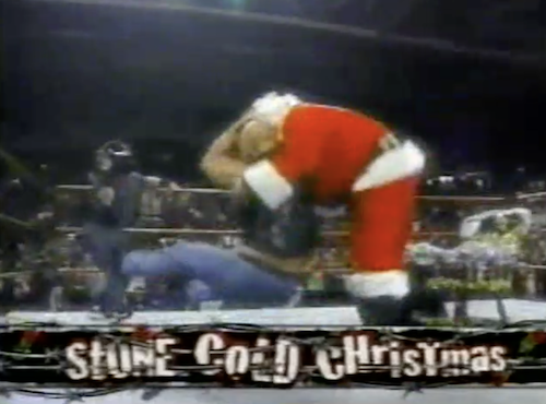 Michael Cole hypes up an appearance by the real Santa Claus as the match gets under way. While Ken Shamrock takes down “B.A. Billy Gunn” several times, Jerry Lawler claims that, despite Undertaker admittedly being buried alive under two tons of dirt, it’s Steve Austin who came out of that match in worse shape.