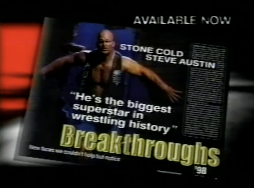 Now it’s time for the real Santa Claus: Freddy Blassie. Various unsatisfied mall shoppers recall this Santa being anything but classy, chopping his crotch and ogling a large-breasted woman. This “WWF Attitude” spot is the pay-off to a night’s worth of hype.