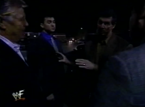 WWF Raw begins with Vince McMahon in the parking lot, as recorded “moments ago”, leaving Shane McMahon in charge while he goes off to train for the Royal Rumble match. He also promises a “Christmas bonus” for the Corporate Team when he comes back from his work-out. In light of the ongoing 2024 lawsuit, I shudder to think what this “bonus” could be.