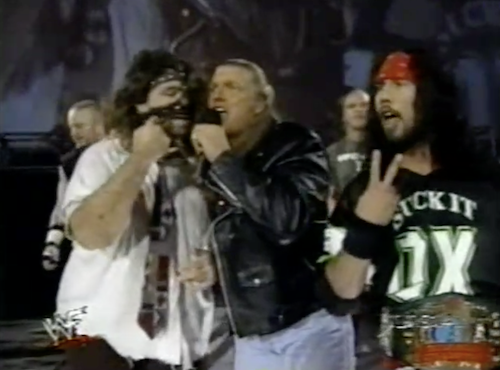Triple H says Shane may have the keys to the kingdom, but D-X has “the key-zuhhh to the boiler room-muhhh”. Out comes Mankind, prompting Shane to wonder aloud whether there is a loser convention in town. There is—LoserCon ’98—but by the time this episode actually airs, it’s been over for days. Fans call Shane an asshole.