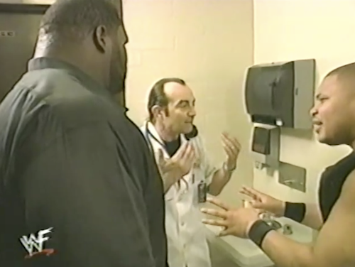As Dr. Francois Petit treats D’Lo backstage, Mark Henry complains that Terri shouldn’t have even been in the ring while pregnant. The doctor, who a few weeks ago used a stethoscope on Terri and told her he couldn’t hear a heartbeat, has absolutely no idea what Mark is talking about. Doc says, as her doctor, that Terri was “never” pregnant (not even with Dakota?). D’Lo begs him not to “kayfabe” him and to instead “shoot”, and Petit gladly breaks doctor-patient confidentiality.