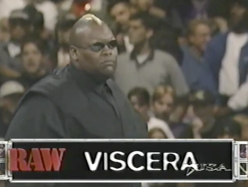 Mideon, Viscera (the former Mabel), and The Undertaker face The Brood in six-man action. Actually, Taker just sits on his throne, so it’s really a five-man. Viscera gets a big pop for his leg drop, but when the numbers game starts to catch up with Mideon & Viscera, the Acolytes interfere and cause a DQ. Undertaker slowly approaches, prompting Lawler to suggest he and Cole make themselves “scared”, a Freudian slip.