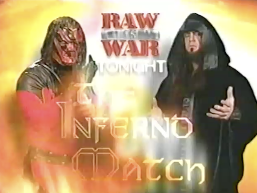 It’s WWF Raw episode 300 by my reckoning. I suppose it depends on whether you count 1994’s “Countdown to the Crowning” as an episode. Tonight will feature WWF Raw’s first-ever Inferno match, pitting The Undertaker vs. Kane.