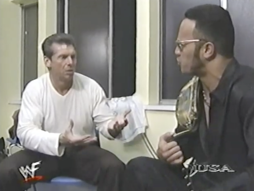 Vince talks with Paul Wight, who says that it’s alright if he beats The Rock tonight because the title will still be in the Corporation.