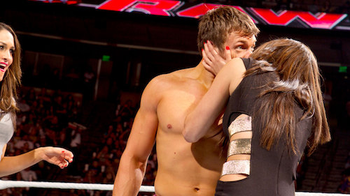 The following week, Brie Bella made her move, trying to kiss a reluctant Daniel Bryan in the middle of a six-person tag match.
