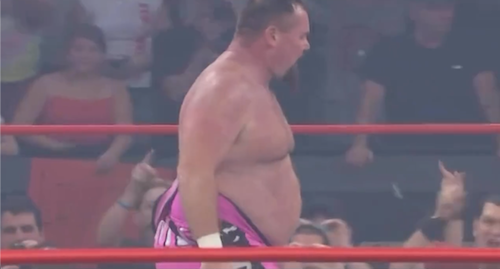 As it turned out, his mystery opponent was Tatanka. Unlike Jim Neidhart, the Native American weighed nearly the same as he did in his WWF days.