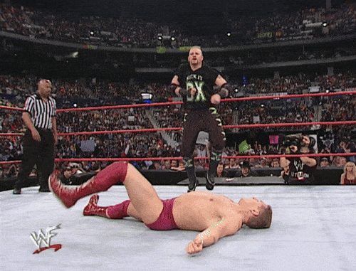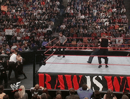 As a confused Road Dogg sought answers from referee Teddy Long, K-Kwik slid into the ring and clocked Regal with the microphone, costing his pal the match and the title. No need to thank him—that’s just what friends do!