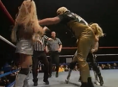 Goldust wins, but the ensuing Sable-Luna catfight (shown in full, of course) lasts nearly as long as the match (at least as presented here).