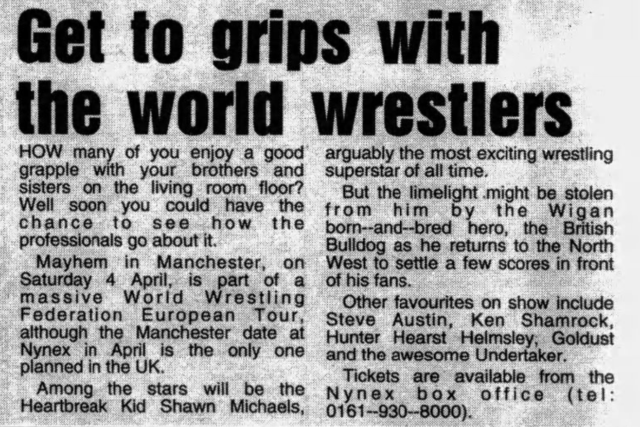 Whether the WWF thought the event too ugly to show in its entirety, or whether they really needed to skimp on magnetic tape, they somehow managed to hack the three-hour Mayhem in Manchester down to 58 minutes.