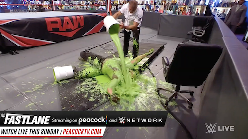 Like so many other storylines and segments during WWE’s ThunderDome era, this one benefited (or suffered) from the total lack of live feedback from the crowd. With no one around telling them how much it sucked, WWE could be as boring or as juvenile as it wanted (and in this case, both).