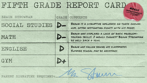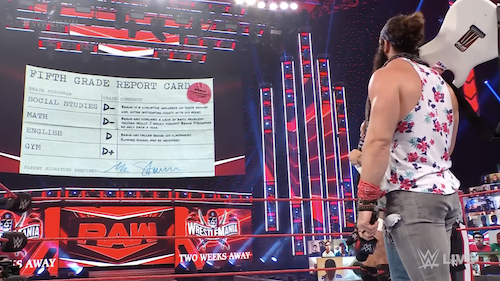 Further proving his point about Braun being stupid, Shane dug up Strowman’s fifth grade report card, where the Monster Among Men earned straight Ds.