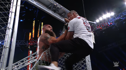 And so at WrestleMania, Braun threw Shane off the cage for his annual big bump…
